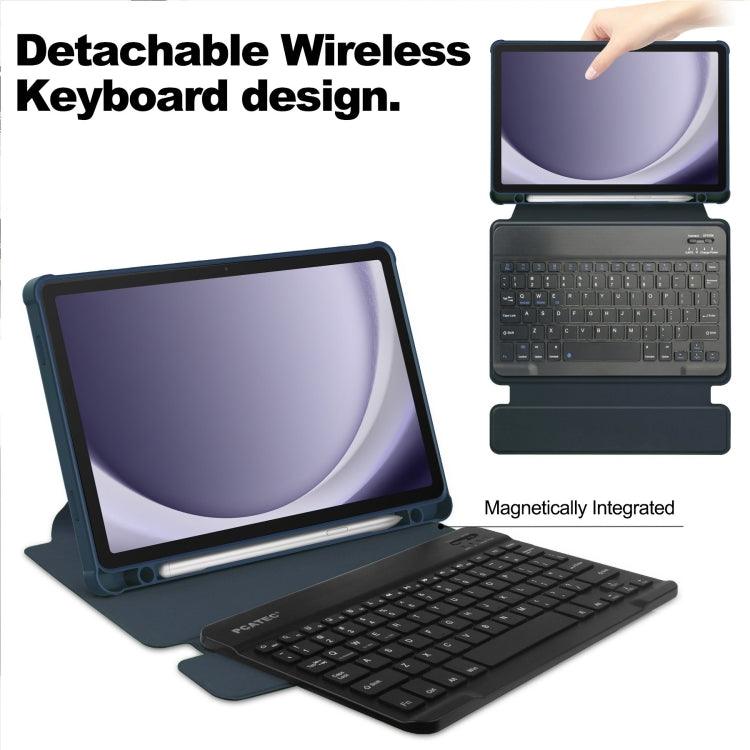 Samsung Galaxy Tab A9+ 360 Rotation Transparent Smart Leather Case Cover with Keyboard (Dark Blue)