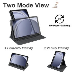 Samsung Galaxy Tab A9+ Acrylic 360 Degree Rotation Smart Tablet Leather Case (Black)
