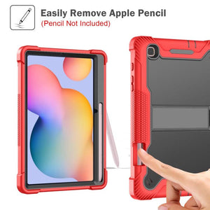 Samsung Galaxy Tab S6 Lite Silicone + PC Shockproof Protective Case with Holder (Red + Black)