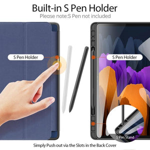Samsung Galaxy Tab S7+ Plus 12.4 inch DUX DUCIS Domo Series Horizontal Flip Magnetic PU Leather Case Cover with Three-folding Holder & Sleep / Wake-up Function & Pen Slot (Blue)