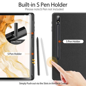 Samsung Galaxy Tab S8+ / Tab S8 Plus / Tab S7 FE / Tab S7+ DUX DUCIS Domo Series Horizontal Flip Magnetic PU Leather Case Cover with Three-folding Holder & Wake-up / Sleep Function (Black)