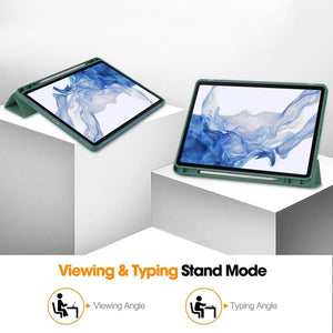 Samsung Galaxy Tab S9 3-Fold Pure Color TPU Smart Leather Tablet Case Cover with Pen Slot (Dark Green)