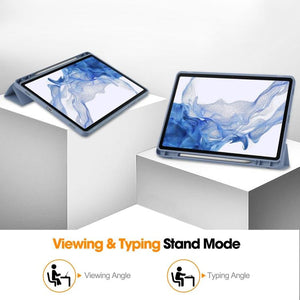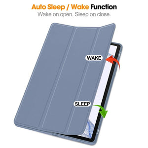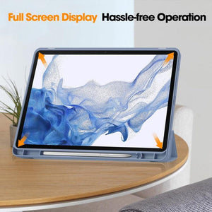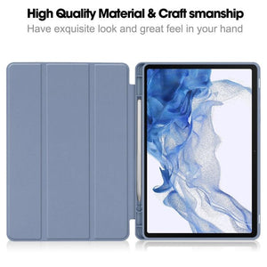 Samsung Galaxy Tab S9 3-Fold Pure Color TPU Smart Leather Tablet Case Cover with Pen Slot (Lavender)