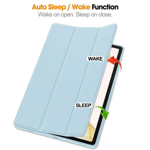 Samsung Galaxy Tab S9+ 3-Fold Pure Color TPU Smart Leather Tablet Case Cover with Pen Slot (Light Blue)