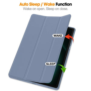 Samsung Galaxy Tab S9 FE+ 3-Fold Pure Color TPU Smart Leather Tablet Case Cover with Pen Slot (Lavender)