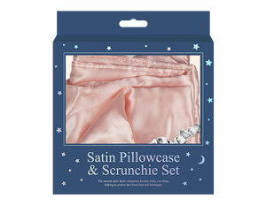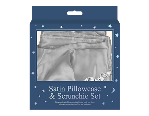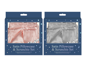 Each pack contains x1 satin pillowcases and x2 silk scrunchies.