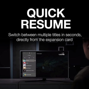 Quick Resume enables players to seamlessly switch between multiple titles and resumes instantly from where you last left off — always the same speed from the expansion card and the internal SSD.