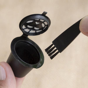A set of 3 reusable coffee capsules, perfect for enjoying a good cup of coffee without harming the environment since their use considerably reduces the waste that originates from conventional disposable capsules. The set includes a small teaspoon to deposit the coffee inside the capsule and press it depending on the desired intensity. It also includes a small brush to make cleaning the capsule easier. These practical coffee capsules are washable and very easy to use, you just need to follow the instructions in the manual included. Each capsule has a use life of approximately 50 uses. In addition, they are very lightweight and hardly take up any space, so they can be taken anywhere and stored easily (in the kitchen, office, etc.). Compatible with coffee machines that use Nespresso capsules.