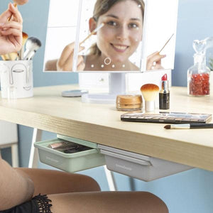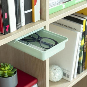 An original and unobtrusive set of adhesive desk drawers that provide extra storage space in unused spaces to help to keep things tidy and organised. 10 double-sided quality adhesives are included providing total fixing and a firm hold on the surfaces used. Their portable, compact, and multipositional design, makes them extremely versatile and adaptable, as they can be easily installed wherever neccessary (without the need for assembly or tools). Although primarily used for desks and work spaces, they are also very useful for shelving, dressing tables, wardrobes, etc. They are ideal for storing any small objects, such as pens, pencils, glasses, magnifying glasses, headphones, USB sticks, notes, scissors, combs, jewellery, makeup products, beauty tools, etc.