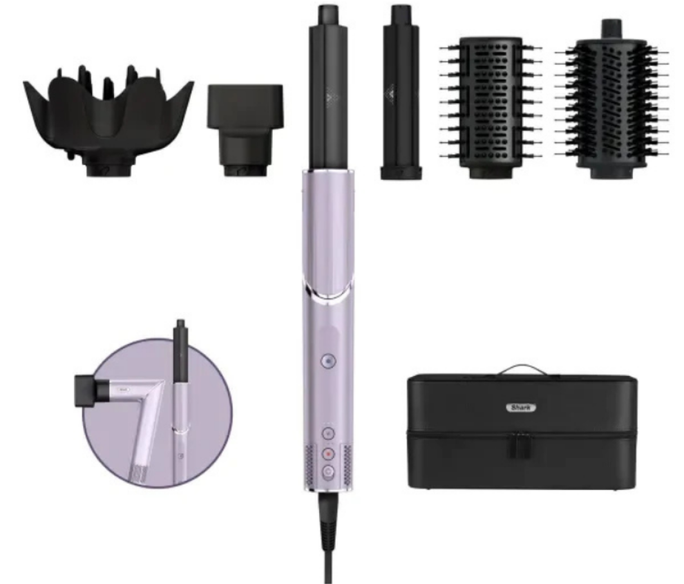 Elevate your haircare routine with the Shark FlexStyle 5-in-1 Air Styler & Hair Dryer in Lilac Frost. This lightweight, high-performance tool transforms with a simple twist, switching between a powerful hair dryer and a multi-functional styling tool.