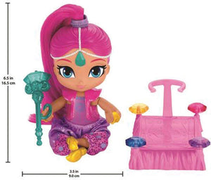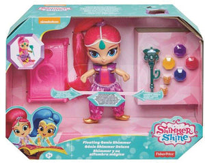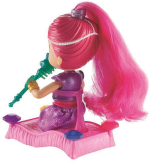 Shimmer and Shine floating genie divine This beautiful Shimmer doll features a fun magical action Kids can push Shimmer s hands together to see her magically switch into a cross legged position so she s ready to ride a magic carpet or take her signature floating position For added fun kids can also place Shimmer on her carpet and pretend she s soaring high above the clouds in Zahra may Falls The carpet can be decorated with the included Genie Jewels and Shimmer s sceptre doubles as a hairbrush