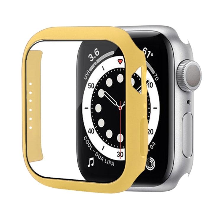Shockproof PC Protective Case Cover with Tempered Glass Film Apple Watch Series 9, 8, 7, 6, SE, 49mm, 45mm, 44mm, 42mm (Yellow)