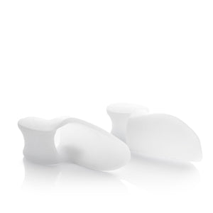 A set of 2 silicone gel corrector-protectors for bunions that relieve pain, avoid footwear rubbing and help to correct the position of the big toe by returning it to its natural correct position. Their ergonomic, light and flexible design is comfortable, discrete and adapts to all feet (unisex, one-size). They are very easy to use, can be worn under socks and with any type of footwear. They are also antibacterial, resuable and can be hand washed.