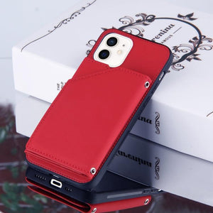 Skin Feel PU + TPU + PC Back Cover Shockproof Case Cover with Card Slots & Holder & Photo Frame For Apple iPhone 12 / 12 Pro (Red)