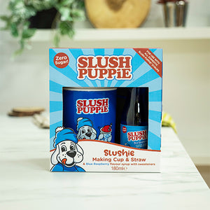 Experience the irresistible tang of SLUSH PUPPiE Blue Raspberry with our Sugar-Free Making Cup! Embrace the iconic flavour with our new ZERO SUGAR Formula that never compromises on taste. This set includes a vibrant blue making cup and a 180ml bottle of Blue Raspberry Sugar-Free Syrup, ensuring a guilt-free indulgence. Unlock the easiest path to pure slushie delight and savour every sip of your homemade SLUSH PUPPiE! Blue Raspberry Flavour Syrup with sweeteners. Ingredients: Water, Thickener (Glycerol E422), Maltodextrin, Flavouring, Acid (Citric Acid E330), Acid (Malic Acid E296), Thickener (E466), Sweetener (E950), Sweetener (E955), Preservative (E211), Colour (E133).