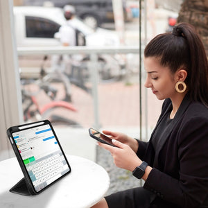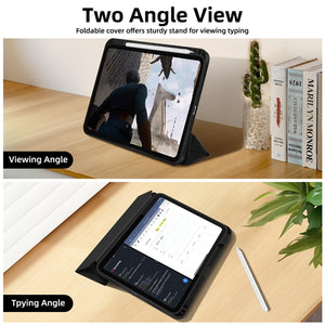 This smart leather tablet case is designed specifically for the Apple iPad Air 11 (2025/2024), offering a perfect blend of style and functionality. The 3-fold design allows you to adjust the viewing angle for optimal comfort, whether you're watching videos or typing. Made from durable TPU and leather materials, it provides excellent protection against scratches and impacts, while the integrated pen slot ensures your stylus is always at hand. Its lightweight and slim profile make it easy to carry, and precise cutouts provide full access to all ports and buttons.
