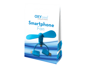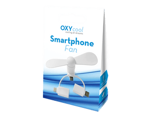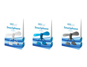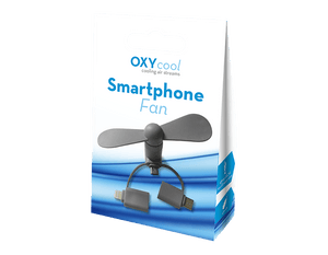 Powered smartphone fan that plugs into a phone charging port Features lightning, USB-C, and micro USB adapters making it compatible for a wide range of phones.