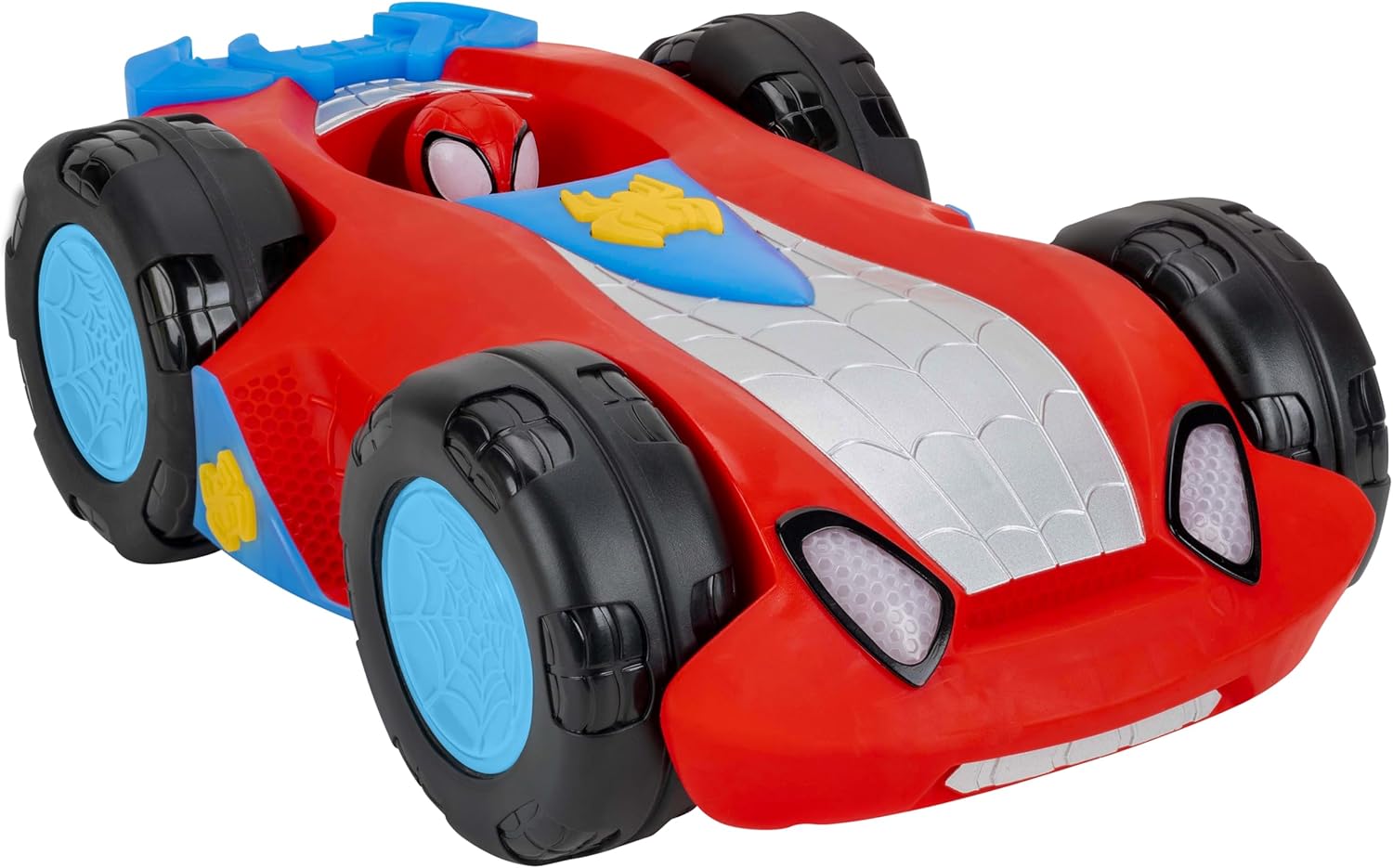 - FLIPPING VEHICLE: 11-inch vehicle flips to reveal Team Spidey with lights and sounds.