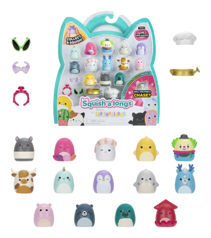 Discover endless fun and creativity with our Squishalongs 14-Pack Series 1. These adorable and collectible squishy toys are perfect for playtime, stress relief, or simply as a delightful addition to your collection. Each pack includes 14 unique squishies, offering a variety of characters and designs that will spark joy and imagination in kids and adults alike.
