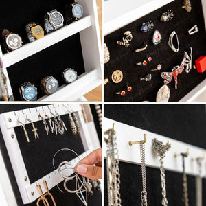 - Multifunction, mirrored-jewellery stand: our dressing mirror allows you to store all your jewellery and accessories in an orderly way: necklaces, rings, earrings, bracelets, watches, hair ornaments, etc. This mirrored jewellery box will help you plan your look, making it easier to choose what you prefer every day.