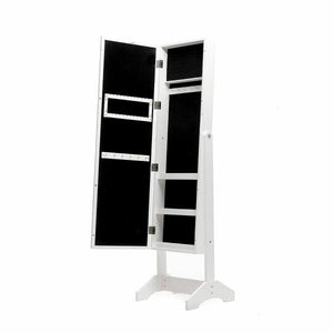 This mirrored wooden jewellery stand with 16 LED lights is perfect for choosing your best look every day, seeing yourself full-length and keeping jewellery and accessories stored, tidy and on hand. Allows for 4 levels of inclination. The light is battery-operated.