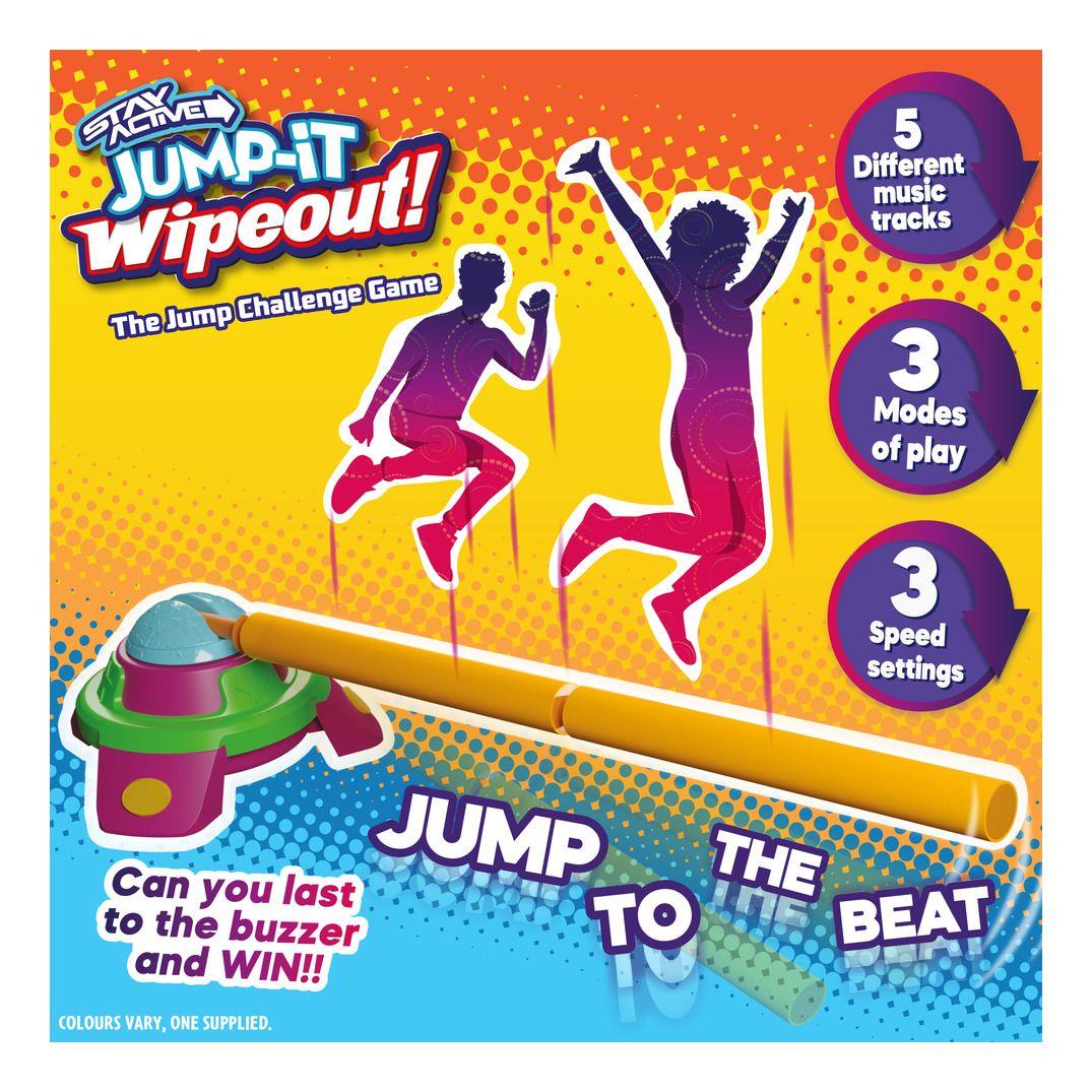 THREE, TWO, ONEJUMP IT WIPEOUT Take the leap and test your skills with the Stay Active Jump-it Wipeout game; the fast and fun musical jump challenge fitness game! Try your luck against the rotating soft.