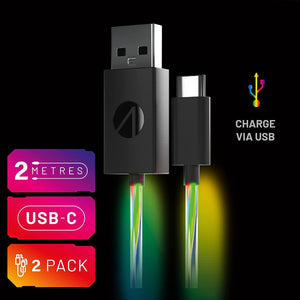- 2m LED charging cables with USB-C connection. Glow-up your gaming with the SP-LED twin charging pack.