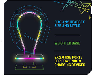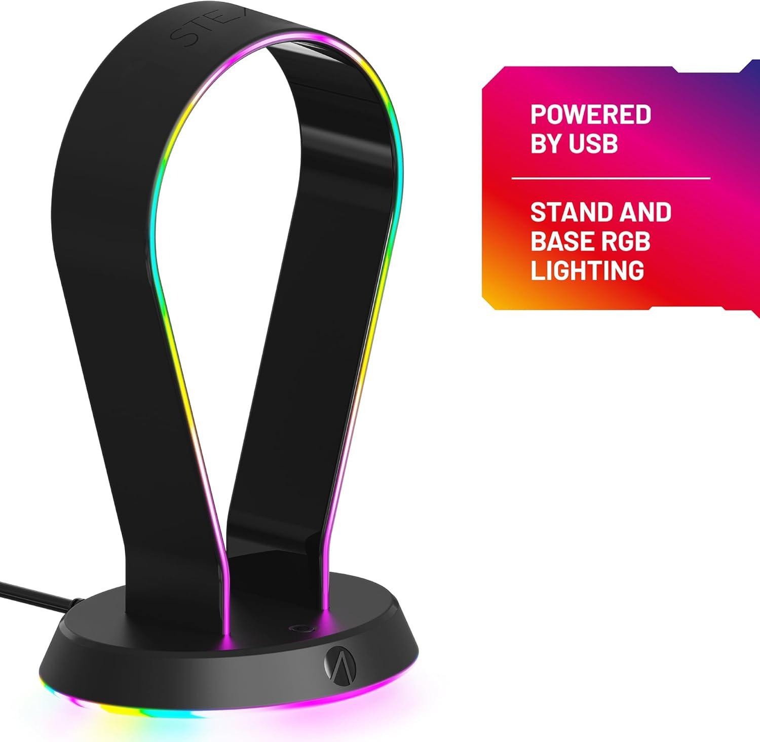 STEALTH LED Light Up Gaming Headset Stand in Black for PS4, PS5, XBOX, Switch and PC - USB Powered with 12 RGB Effects