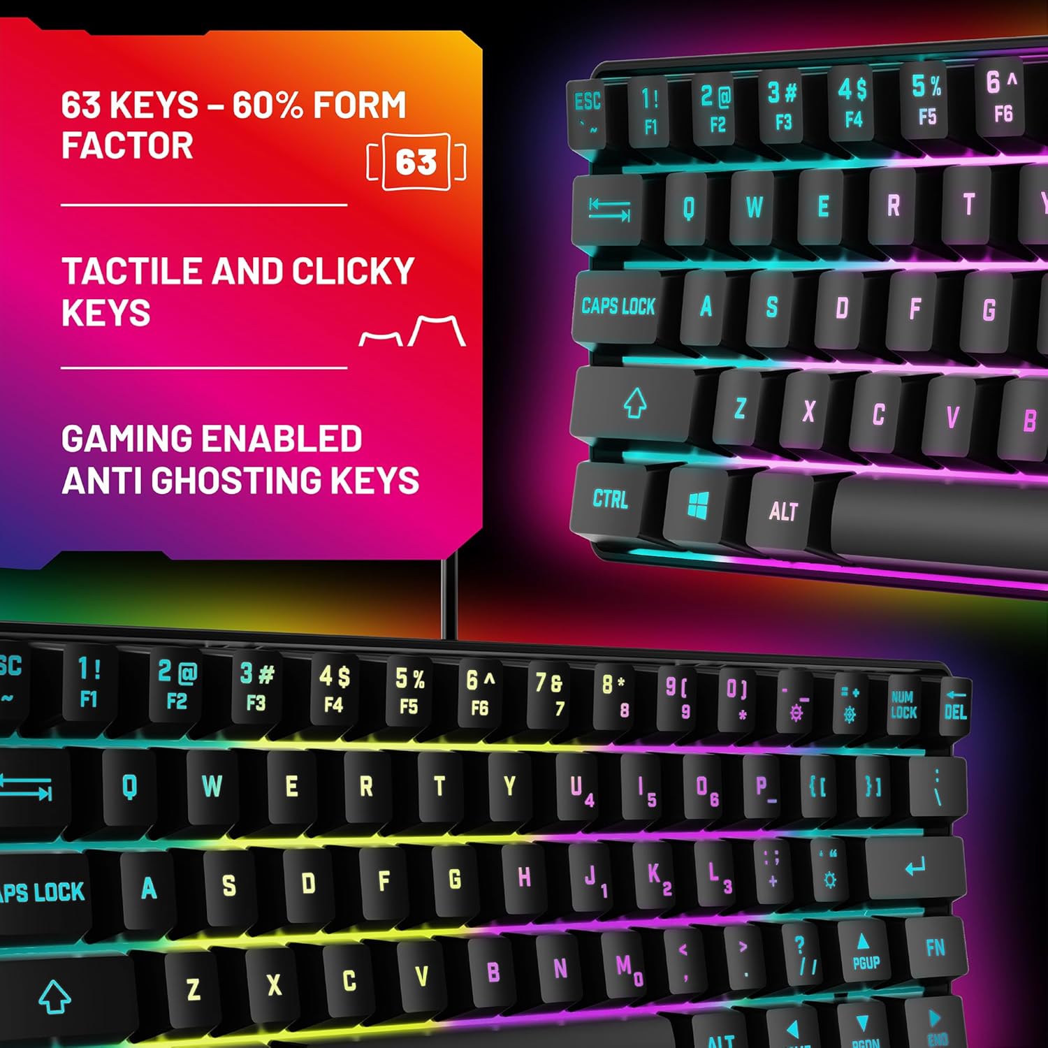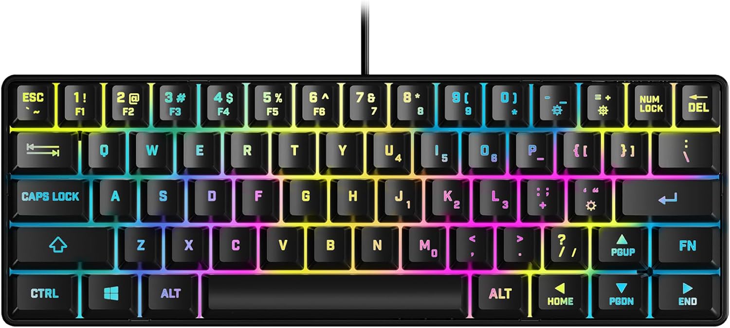 60% ultra-compact layout saves space and provides more room for mouse movement