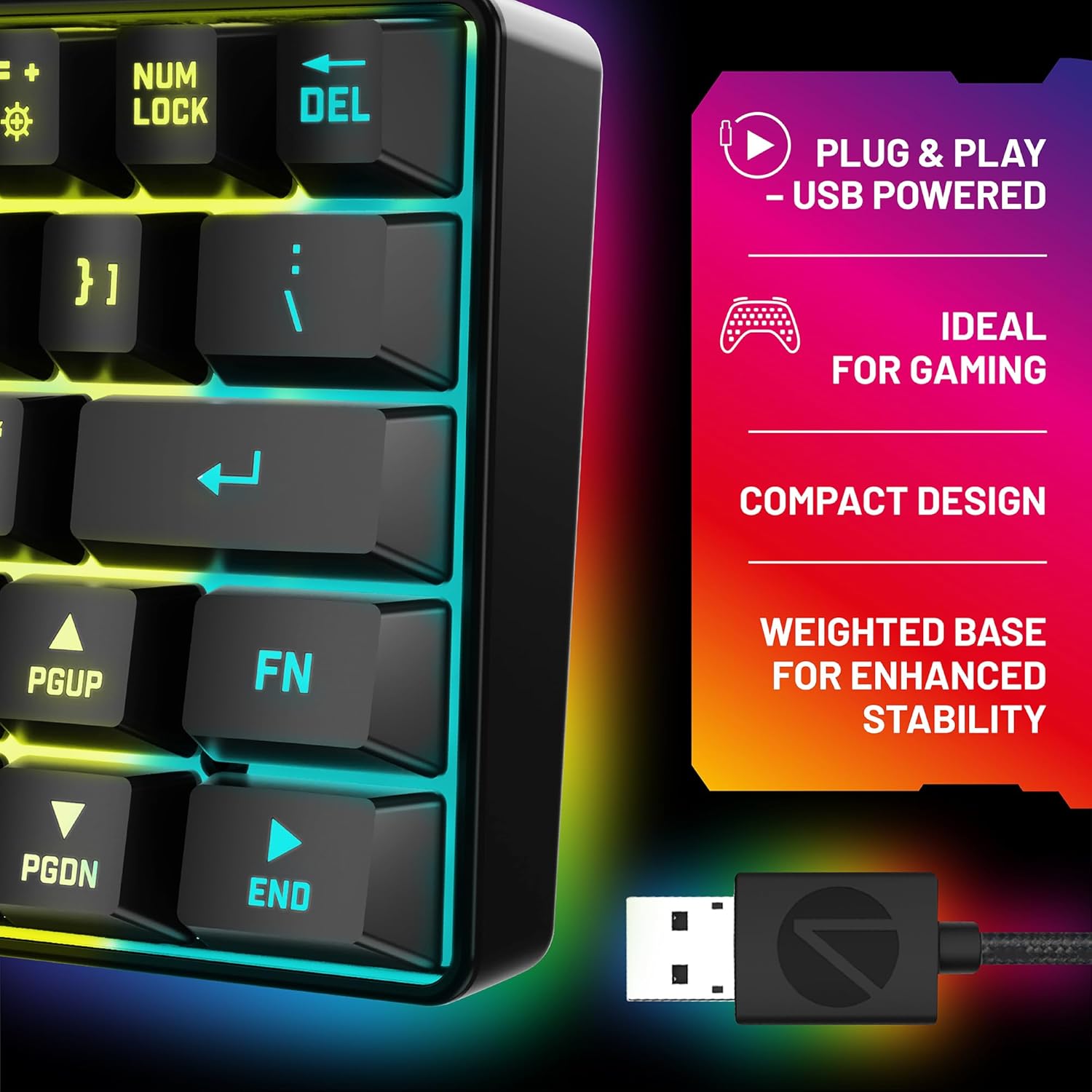 STEALTH Light Up Ultra Compact Mini Gaming Keyboard - Black, with Weighted Base and Multicolour Lighting Effects