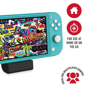 Always be ready for action with the STEALTH Switch Charging Stand & Mains Adaptor Pack. For use with both the Nintendo Switch and Nintendo Switch Lite, the Switch charging stand connects through the USB-C connector, providing storage whilst powering up your favourite portable console. The Switch Charging Stand can also be used as a Play & Charge accessory for the Nintendo Switch, securely holding your Switch in place, you can detach the Joy-Con’s to carry on your gaming whilst the console receives additional power.