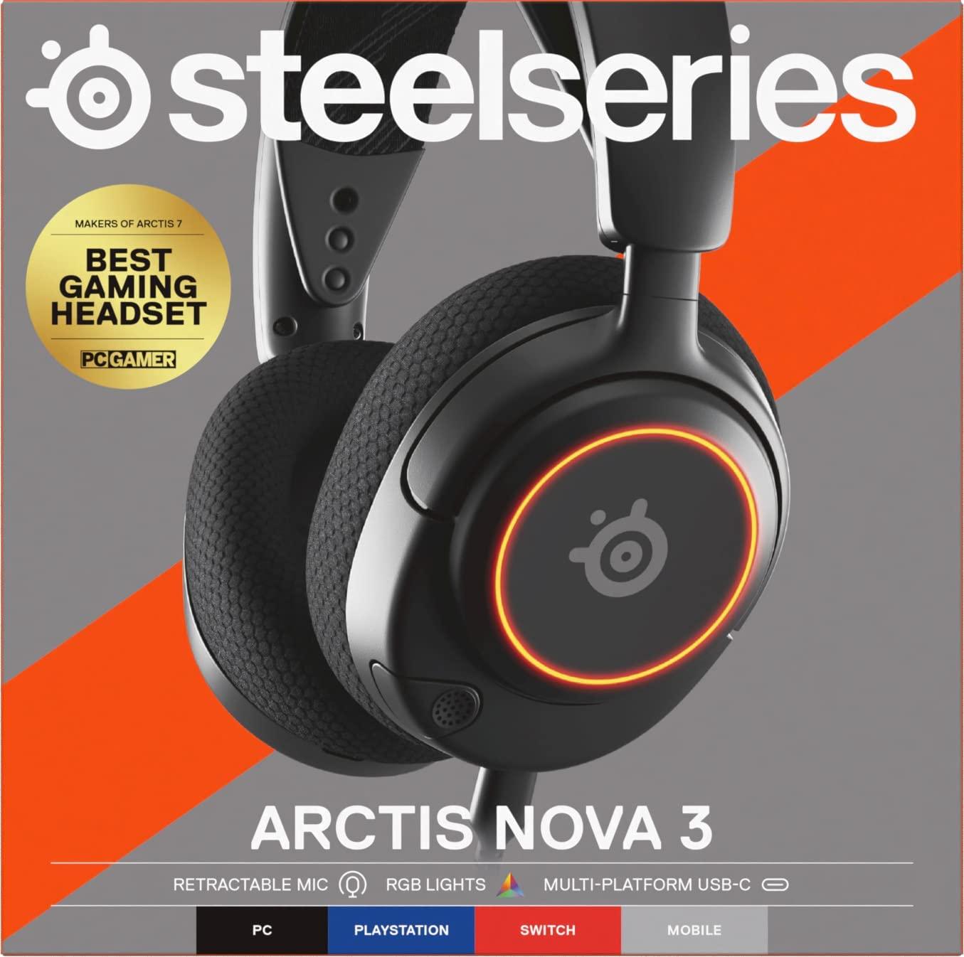 SteelSeries Arctis Nova 3 Multi-System Gaming Headset - Hi-Fi Drivers - 360° Spatial Audio - RGB Lights - AirWeave Memory Foam Earcups - Super Lightweight - ClearCast Gen 2 Mic - PC, PS5, PS4, Switch