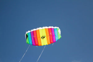 If you've always wanted to learn how to fly a kite, but have been put off by the cost (who knows, you might not be very good at it) then the Stunt Foil Comet Rainbow kite R2F is a great low budget entry point. Part of our eco-line, It's a smooth flier with controllable pull, that's just perfect for beginners and is ready to fly straight out the pack. Launch yourself into the exciting world of kite flying with this cheap, and easy to fly stunt foil. You'll never look back!