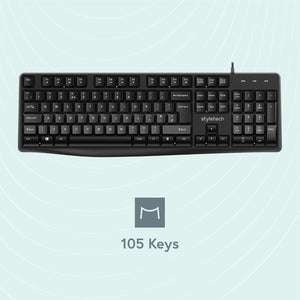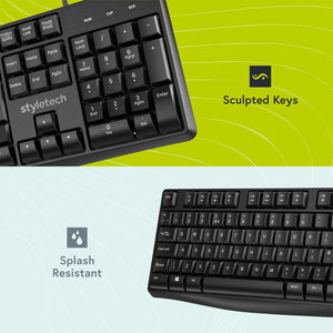 styletech USB-Powered Wired Keyboard for Windows PC Black