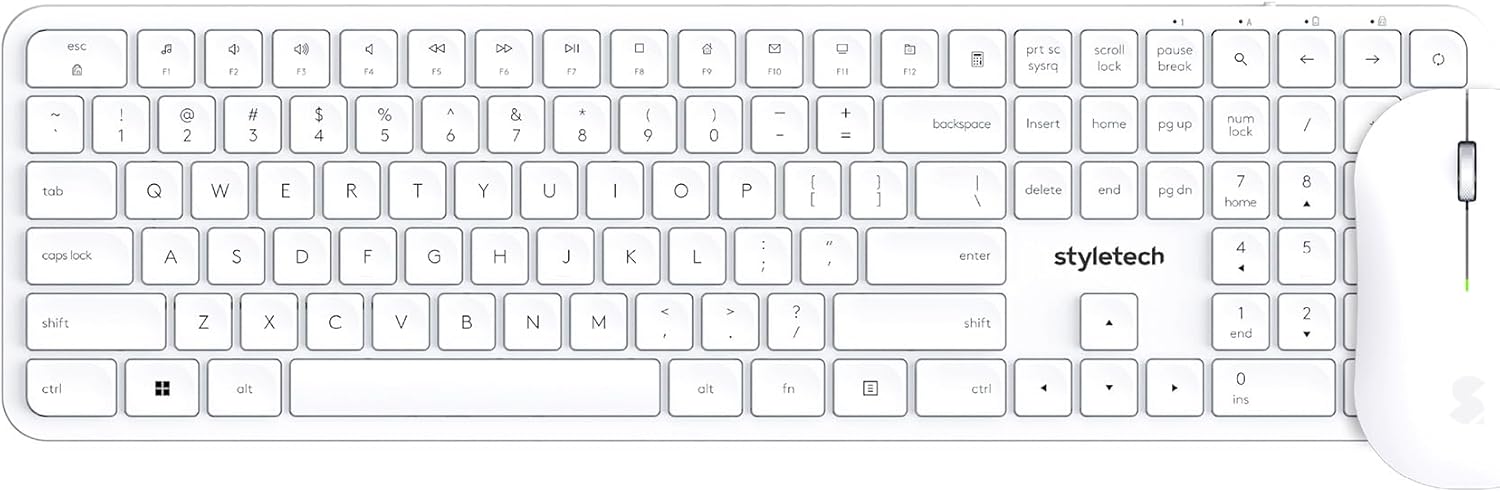 Styletech White Wireless Mouse & Keyboard – Sleek, Minimalist Combo for Modern Workspaces