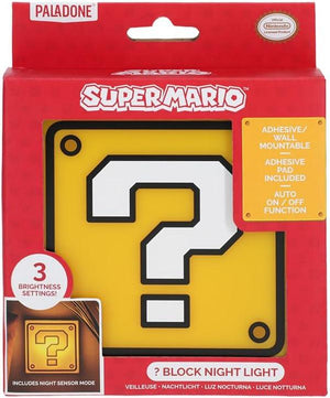 Super Mario Question Block Night Light, Auto Night Sensor & Portable with Wall Adhesive, Licensed Nintendo Box Lamp
