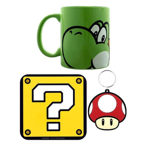 Super Mario (Yoshi) Gift Set comprises of one mug, coaster and one keyring all featuring images from Super Mario. Perfect for only the most serious Super Mario fan, this gift set comes presented in awesomely themed packaging.