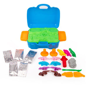 The modeling dough is dermatologically tested, super-soft, re-usable and is made with wheat flour and food colouring.