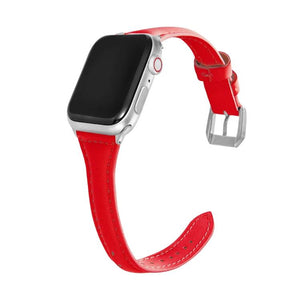 T-shaped Thin Leather Watch Strap Apple Watch Series 9, 8, 7, 6, SE, 41mm, 40mm, 38mm (Red)