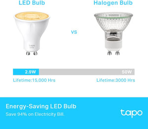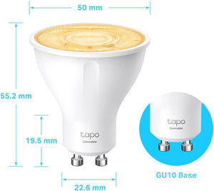 Tapo (4-Pack) Smart Bulb, Alexa Light Bulb, WiFi Smart Light Bulb, GU10 Lamp Base, 1-100% Dimmable Wi-Fi LED Spotlight Bulbs, High Lumen, Remote Control, Voice Control with Alexa & Google