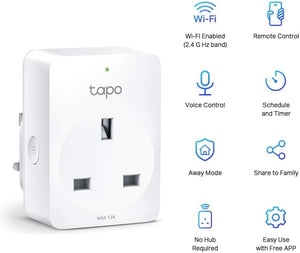 Tapo Smart Plug, Wi-Fi Plug, App Remote Control, Alexa Plug, Voice Control with Alexa & Google, Away Mode, Scheduling & Timer, Device Sharing, Easy Quick Set Up, Multiple Safety