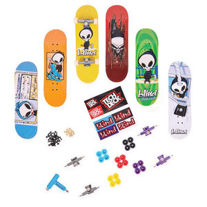 - Includes: 1 Assembled Fingerboard, 5 Tech Deck Boards with Grip Tape, 2 Sticker Sheets, 20 Wheels, 1 Skate Tool, 1 Collectors Poster, 4 Skateboard Trucks, 26 Screws, 14 Nuts