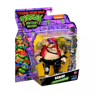 Get ready for the Mutant Mayhem figures and accessories, based on the new CG animated Teenage Mutant Ninja Turtles movie! Be careful not to say anything that will set this guy off! Warthog mutant Bebop not only sports some killer shades and a retro boombox, he also likes to fight in style! When Super Fly plots to destroy the Turtles and wreak mutant mayhem, Bebop and his dangerous-yet-dim partner in crime, Rocksteady, are ready and willing to join the fight! Bebop figure is 4.25” tall and designed to match his movie character. Set includes his blaster and a weapons rack, and comes in a unique Mutant Mayhem package!