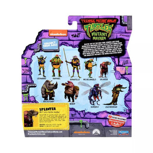 Collect all the TMNT Mutant Mayhem action figures and accessories from Playmates Toys, your Teenage Mutant Ninja Turtles Toy Headquarters!Get ready for the Mutant Mayhem figures and accessories, based on the new CG animated Teenage Mutant Ninja Turtles movie! Sensei. Master. Mutant. Rival. Rat-dad. Of all his many roles, Splinter has most cherished being a father. When his mutant ninja turtle sons grow into the Teenage Mutant Ninja Turtles, they seek a world beyond the sewer home Splinter has built for them. With his training, and some last-minute parenting advice, the Turtles fight to keep their city safe. Now it's just up to Splinter to keep them safe, too. Splinter figure is 4” tall and designed to match his movie character. Set includes his iconic walking stick and comes in a unique Mutant Mayhem package!