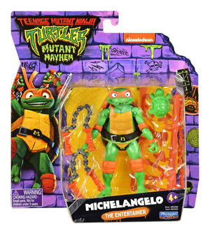 - MOVIE PACKAGING: Mikey comes in a highly decorated blister card package with bright, bold details that includes TMNT Mutant Mayhem movie branding