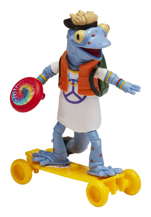 • HIGHLY POSEABLE: Mondo Gecko has 14 points of articulation for great, action-packed battle poses ACCESSORIES: Mondo Gecko comes ready to spread good vibes with a tie-dyed frisbee, a working skateboard, and backpack accessory