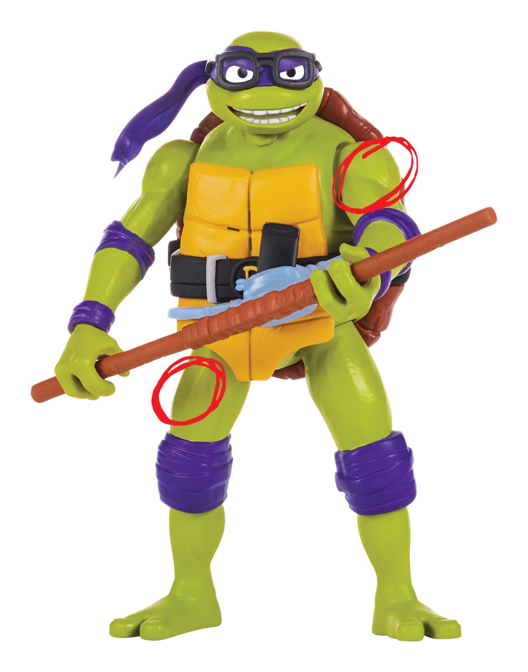 • SHOUT OUT: Pull back on his spring-loaded right arm or left leg to make him shout—spoken by the same talent who voices Donnie in the movie.