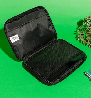 Multi-pocket electronics and cable pouch, made from nylon with contrast panels and chunky lace zipper pulls. Complete with a branded pocket.