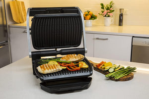 - 6 specific programmes: Burger, Chicken, Bacon, Sausage, Red Meat and Fish, plus the Optigrill +'s new Temp Control with 4 different temperature settings.