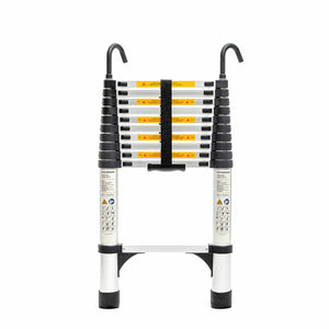 This telescopic ladder helps you perform numerous tasks comfortably and safely. Its extendable design allows you to adjust its height with ease. It includes 2 fastening hooks, and is lightweight and easy to transport and store. Supports up to 150kg.
